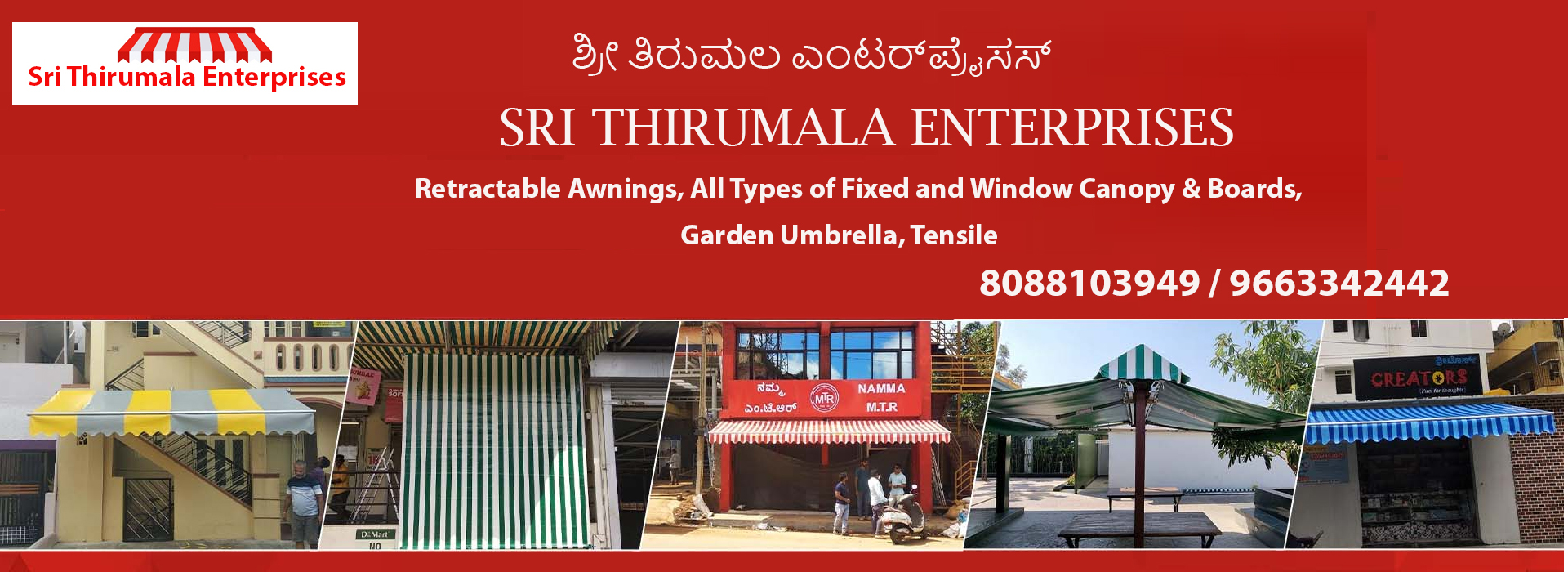 Sri Thirumala Enterprises is one among Best Canopy Installation in Bangalore. We do all kind of Canopy installation like Pergolas, Garden Umbrella, House Awning, Door Awnings, Car Parking Awning, Tensile they are all unique products. Our Products Canopy’s are solutions for the Home and Garden Office purpose. We guarantee on our Products Retractable Awnings all type of Fixed and Window Canopy and Tensile. Thirumala Enterprises has made many happy customers in All over Bangalore and Karnataka.